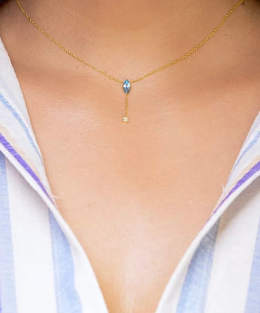 The Aqua Sparkle with Diamond Drop Necklace