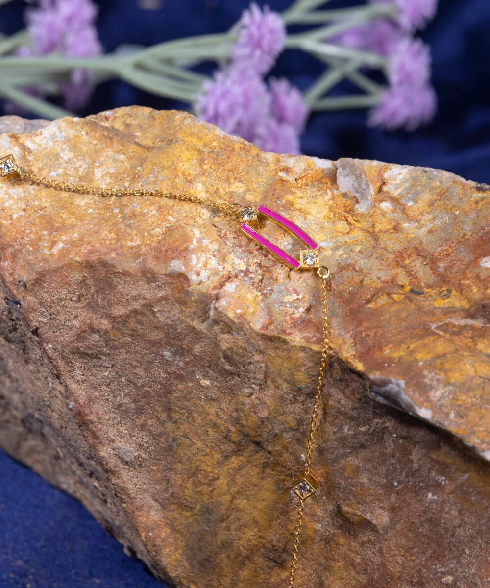 Elevate your style by wearing the Minimalistic Enamel and Gold Bracelet as a standalone piece for a pop of color or stack it with other bracelets for a trendy and personalized look. The versatility of this 14Kt gold accessory makes it a perfect companion for both casual and formal occasions, ensuring an elegant statement every time.