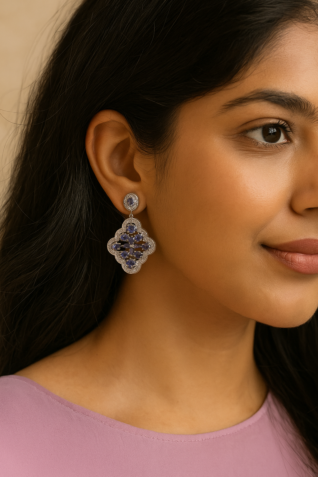 The Elegant Droppings — a delicate dance of depth and brilliance. These 925 sterling silver earrings feature the rich allure of Iolites paired with the sparkling clarity of White Topaz, creating a look that’s both timeless and effortlessly graceful. Designed for the woman who appreciates classic elegance with a hint of contemporary charm.