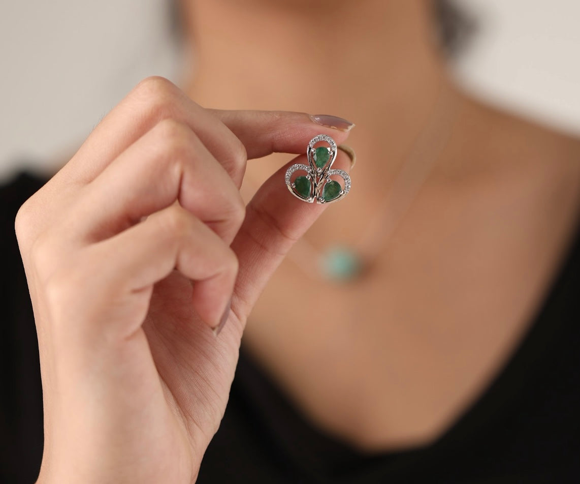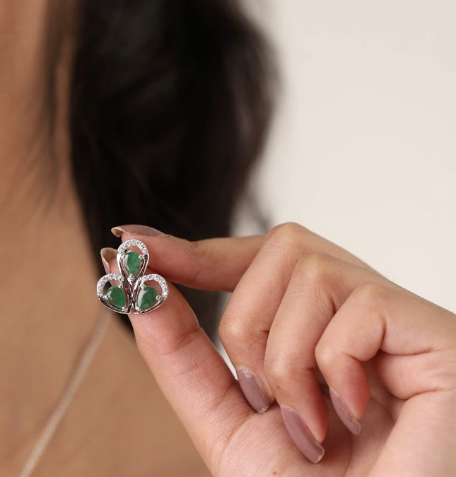 The Emerald Whisper Earrings — where timeless elegance meets vivid expression. Set in 925 sterling silver with high-grade natural emeralds, this pair captures the rich depth of green in a silhouette that feels both classic and captivating. Designed to elevate your everyday luxury, these earrings speak softly but leave a lasting impression.
