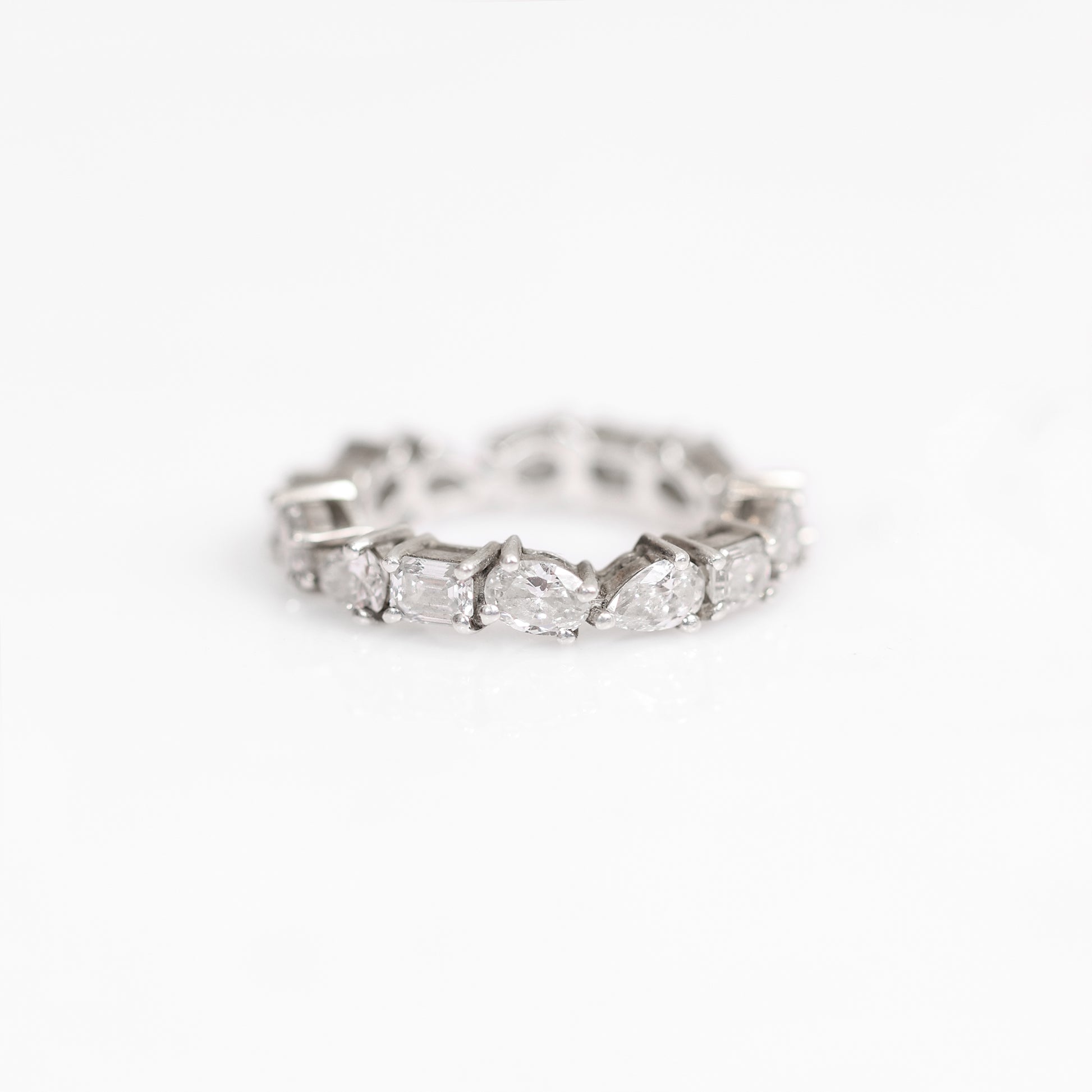 Unique and full of character, this fancy-shaped eternity ring features a dazzling mix of diamond cuts, each chosen for its brilliance and individuality. From marquise to pear, oval to round, the combination creates a rhythm of light that flows endlessly around the band. Symbolizing eternal love and the beauty of diversity, this piece is as meaningful as it is striking.